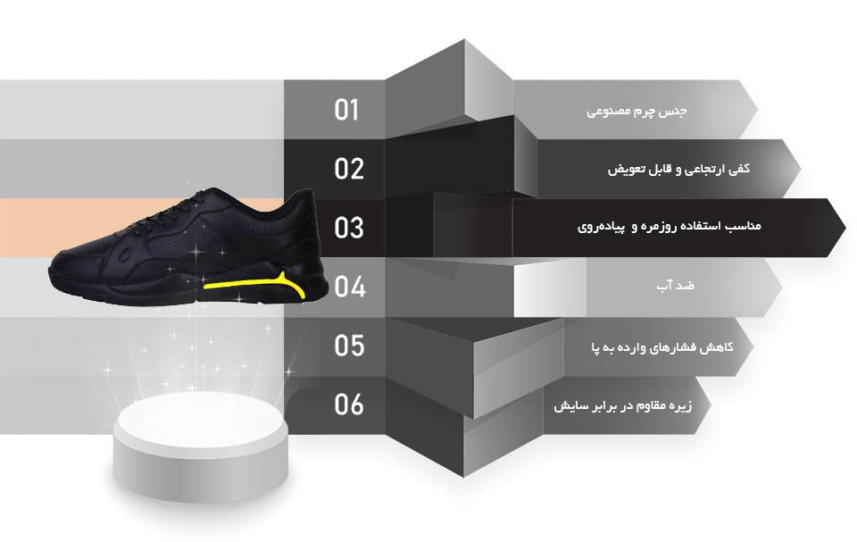 کفش مخصوص پیاده‌روی کد «est» با رویه‌ای از جنس چرم مصنوعی طراحی و روانه بازار شده است؛ این رویه مشکی ساده است و ظاهری براقی به کفش داده است. کفش مخصوص پیاده‌روی est دارای نواری زردرنگ در قسمت آج است که در تناقض با رنگ مشکی، ظاهری اسپرت را ایجاد کرده است. از این محصول می‌توان به عنوان یک کفش روزمره استفاده کرد و در پیاده‌روی‌ها آن را با خود به همراه داشت. کفش est با استفاده از بند در پا محکم می‌شود. زیره به‌کاررفته در این کفش به شکل ضربه‌گیر عمل می‌کند و مانع از انتقال فشارهای وارده به زانو و کمر می‌شود. این زیره در برابر سایش مقاوم است. پا قلب دوم انسان است بنابراین استفاده از کفش مناسب و راحت یکی از فاکتورهای مهم در سلامتی انسان است. این کفش مخصوص پیاده‌روی هم با توجه به این نکته تولید و روانه بازار شده است.